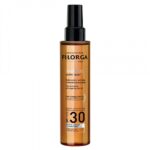Filorga UV-Bronze Tan activating anti-ageing sun oil- päikesekaitseõli SPF30, kaitseb efektiivselt teie nahka päikesekiirguse kahjuliku mõju eest, samal ajal niisutab ja toidab nahka, aitab ennetada enneaegset vananemist ning jätab naha siidiselt siledaks, pehmeks ja kaitstuks nii päikese kui keskkonna kahjulike mõjude eest. Koostises sisalduv fotoaktiivne tehnoloogia koos UV-filtritega kaitseb nahka päikesekiirguse eest. Hüaluroonhape koos vananemisvastase õlikokteiliga niisutavad ja toidavad inetnsiivselt nahka, taastades naha pehmuse, elastsuse ja hea toonuse. Tan-activator kompleks aitab kaasa kauni ja ühtlase läbikumava päevituse teket.